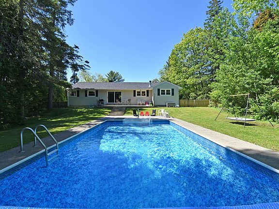 Nestled in the woods on this dead end street you will find this meticulously kept 3 bedroom 1.5 bath ranch in a great area of Hampden.Inside you will find an oversized Living room that is bright and sunny and offers a brick Fireplace for the times you want to snuggle up to a warm fire. The Dining Room has large Patio doors leading to the private wooded backyard and the refreshing and inviting inground swimming pool. The large eat in kitchen has access to the outside,oversized attached garage and basement. The basement offers more finished space large family room an office and Laundry room and lots of storage. There is nothing to do here but move in.