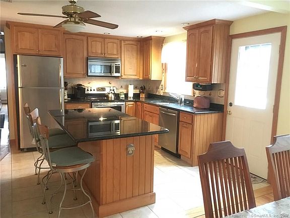 Live, Love, Laugh and Play in this inviting Raised Ranch on a wonderful level lot in one of Northfords's favorite neighborhoods. 48x24 Raised Ranch offers kitchen open dining room to living room, hard wood floors, updated baths, central air, and oversized deck and patio. 2009 kitchen was opened to DR and updated with granite,SS appliance, and center island. Well maintained in and out - 2005 Windows/thermopane with warranty. All appliance remain inlcuding W/D and second refrigerator in lower level. Enjoy a lower level with walkout , cozy fireplace and 1/2 bath for future possible in-law. Laundry/utility room, too. 2 car under and 3rd oversized detached garage for hobby, home buisiness or workshop. Beautiful level lot with room for in-ground pool, play, pets and picnics. (family room photos will be on shortly) Won't last.