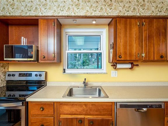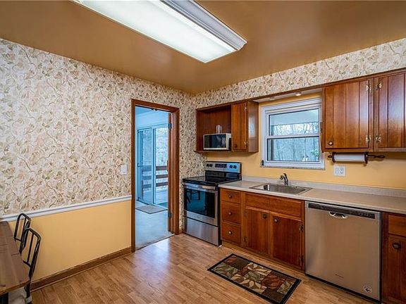 2 story colonial set in a mature treed setting and located at the right side of the end of the street. Covered front entry. Loads of curb appeal. Covered back deck and rear patio overlook level private yard. Hardwood floors under the 5 Bedrooms upstairs. 2 full bathrooms are upstairs. Spacious eat-in-kitchen. Family room has log burning fireplace and offers access to outside patio. Huge living room has a bay window that brings the natural lighting inside. Formal Dining room offers access to exterior covered deck. Trane furnace and central air are 13 years old. Loads of windows that were updated around 2017.