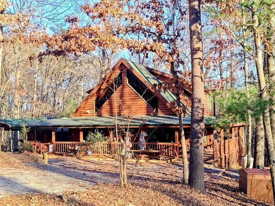 Calling all fishermen and nature lovers-your perfect mountain retreat is here. This true log cabin sits on a level, 1.45-acre wooded lot, offering a peaceful, storybook setting surrounded by the gentle sounds of rustling leaves and mountain wildlife. Just beyond the cabin, a community nature trail leads to deeded access on the famed Fightingtown Creek, known for its crystal-clear water and record trout. It's an incredible amenity-but the real value lies in the inviting home that anchors it all. Step inside to a warm, welcoming interior designed for comfort and gathering. The spacious kitchen features high-quality cabinetry, generous counter space, a large island with seating, stainless appliances, and plenty of room for a full-size dining table-a perfect setup for anyone who loves cooking and sharing meals with family and friends. The living area is just as inviting, with a cozy fireplace and space for the included premium slate-top pool table, ideal for relaxed evenings together. The primary suite rests in the loft with its own private bath and dedicated laundry room. The guest room offers its own full bath as well, giving visitors a comfortable, private space. Large windows throughout fill the home with natural light and fresh mountain air, adding to the cozy, wooded charm. Step outside to a wide wrap-around porch-partially screened-offering several spots to savor the quiet mountain setting. Enjoy the included hot tub, perfectly situated for stargazing, or gather around the outdoor firepit for peaceful evenings under the trees. A fully wired outbuilding provides excellent space for storage, a workshop, or hobbies. Furnishings are not included but may be negotiated separately for buyers seeking a more turnkey experience. Homes that blend this level of comfort, charm, usable land, and creek access don't come around often. Come see why this peaceful cabin is the kind of place people visit once-and never want to leave.