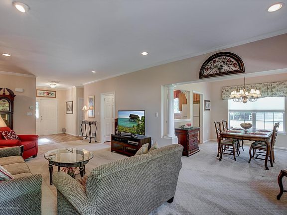 Enjoy the best value in the Villas at Jumping Brook! This expanded Augusta model features an open entry foyer to the expansive living room which flows to the dining room and sun room(den) with sliders to a brick paver patio. The nicely appointed eat in kitchen offers corian counters, wood floors and a convenient pantry. A half wall opening gives you the open flow thru to the dining room clear into the sun room! A well sized master suite offers two closets, and a spacious master bath with double basin vanity, shower and tub. The guest bedroom features custom window treatments and a nicely sized closet. The laundry room houses a tankless water heater and leads to the two car attached garage. The heat and air conditioning have been updated as well. The Villas at Jumping Brook is a