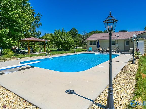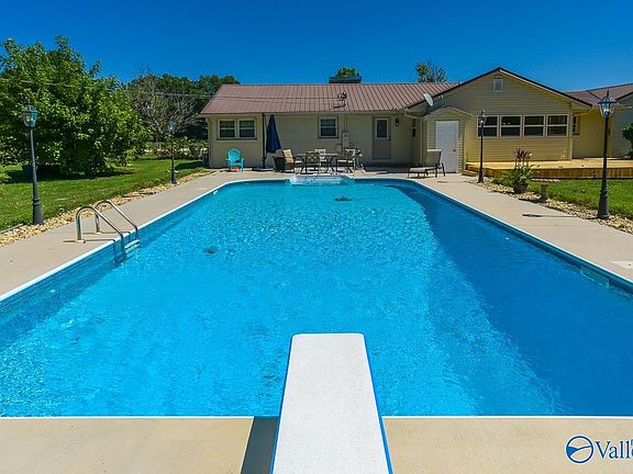 Basement Rancher on 3 acres! LARGE wrap around porches! The deck and patio overlook the almost new 20x40 in-ground pool. Per seller New HVAC installed in last 2 years. Wood floors in most of the house and tile/vinyl in wet areas. Huge great room & a very social kitchen area make this a great entertainment home. Unfinished Basement has been used as a man/woman cave & has unlimited potential for future updates. The 36x30 detached garage/workshop with concrete floor is the dream or anfyone that needs a private workshop or office space & room for many projects with 10x8 roll-up garage door! 2 lean-to areas great for animals & pets! 15 minutes to south Huntsville Wal-Mart!