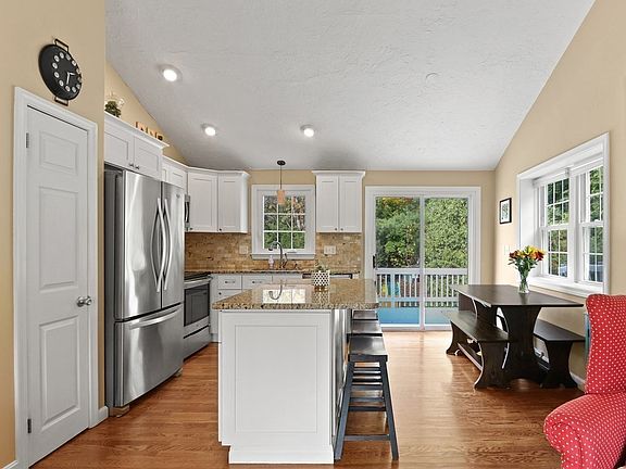 - Kit Dscrp: Pantry, Dining Area, Flooring - Hardwood, Countertops - Stone/Granite/Solid, Deck - Exterior, Ceiling - Cathedral, Breakfast Bar / Nook, Kitchen Island, Stainless Steel Appliances, Open Floor Plan, Recessed Lighting, Window(s) - Bay/Bow/Box, Slider