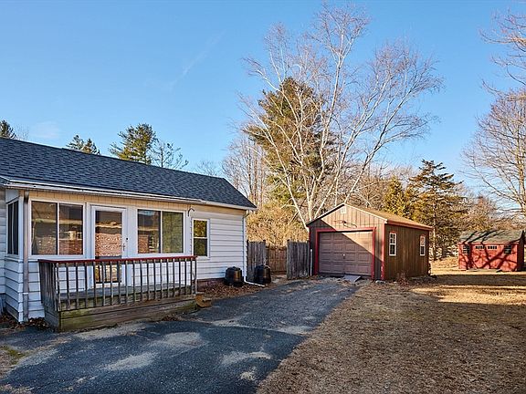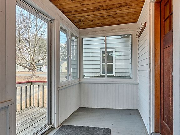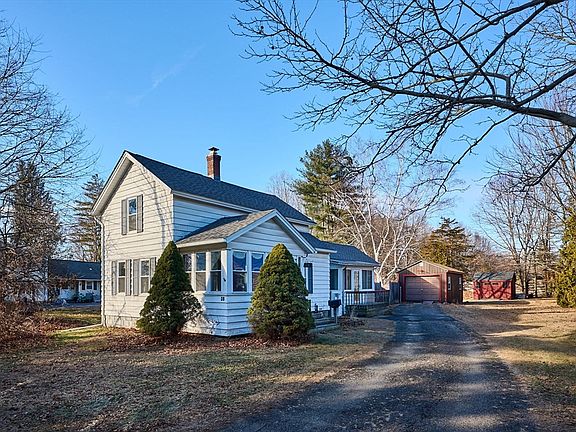 Discover the charm of this affordable country farmhouse, perfectly situated in town and offering the convenient option of first-floor living. Enter through the inviting three-season porch into a cozy, sun-filled living room. To the right, the updated kitchen shines with its mudroom entry, pantry and quartz counters, while the remodeled bath features integrated laundry for added ease. A spacious primary bedroom is tucked to the left of the living room, and upstairs, you'll find two additional bedrooms. Lovely hardwood floors grace most rooms, adding warmth and character. Outside, the level yard invites play and relaxation with a treehouse and a partially fenced stone patio. A larger outbuilding houses a heated bonus room and unheated workshop, while a smaller shed provides ample storage. With updates including a newer roof ('19), replacement windows ('21), fully upgraded 200 AMP electrical ('23), lined chimney, and modern appliances, this home is ready to impress the discerning buyer!
