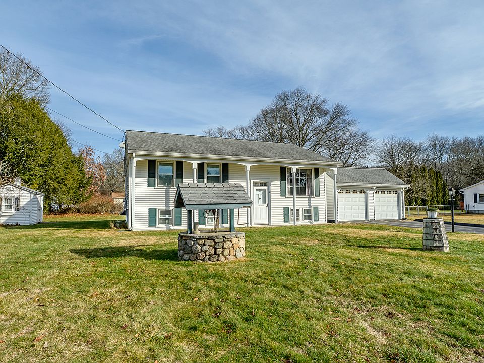Enjoy excellent curb appeal on a quiet, no-through street. This raised ranch offers generous living space across two levels, featuring hardwood floors in the living room and all three main-floor bedrooms, plus the comfort of central air. The main level includes an eat-in kitchen, a bright living room with a picture window, three bedrooms, and a full bath. The finished lower level adds even more versatility with a half bath and three additional rooms-measuring 12 x 18, 9 x 12, and 9 x 11-ideal for a home office, gym, or media room. Outside, you'll appreciate ample off-street parking, a spacious two-car detached garage, a level backyard with a screened-in gazebo, and an extra storage shed. Come take a look!