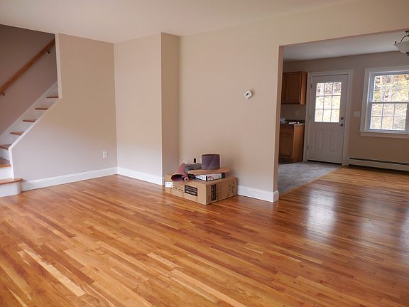 Newly refinished interior duplex unit. Including new kitchen with stainless steel appliances, new baths, refinished hardwood floors throughout; freshly painted. Spacious, light and bright living room leads to dining area. Nice deck for warm weather enjoyment. Full basement with washer dryer hook-up and one car garage. Sidewalks to Charming Downtown Bethel. Exterior to be resided Spring 2016 DO NOT OPEN BACK DOOR - DECK NOT COMPLETED YET