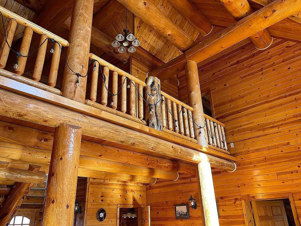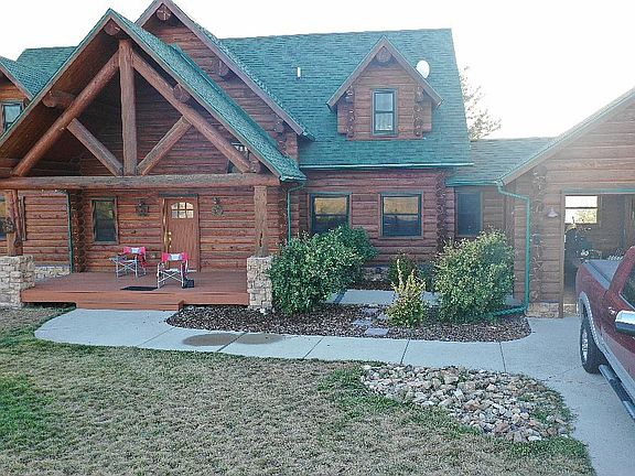 Log home on The Golf Club at Devils Tower. Spectacular views of mountains, golf course, and Devils Tower. Resort is growing rapidly and offers not only golf but also trap, skeet, hunting, fishing. Airport on south side of resort.