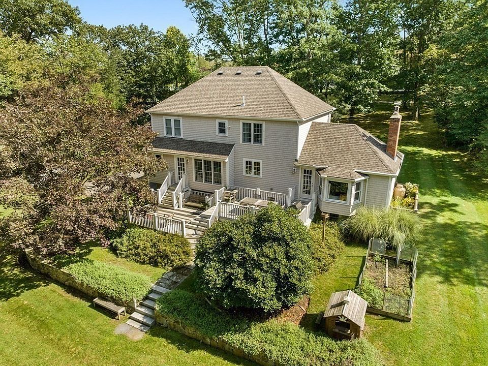 Nestled on over 2 acres in the coveted Turkey Hill enclave, this sun-drenched 4-bedroom Colonial showcases a harmonious blend of comfort and luxury. Revel in the Faneuil Kitchen, adorned with a sunny Breakfast Nook that effortlessly flows into a grand Family Room. Featuring vaulted ceilings, bespoke built-ins, skylights, and a gas fireplace, this space is both inviting and refined. Gleaming hardwoods grace the entire home, punctuating the formal Dining Room and a versatile Living Room/Office. Ascend to four generously sized bedrooms and an en-suite Primary. The lower level provides a spacious area ideal for relaxation or remote work. Experience serenity on the expansive mahogany deck overlooking the bucolic yard w/newer roof and heating system. Relish proximity to mesmerizing vistas of the Boston skyline at Turkey Hill, Weir River Farm, and the library. Plus, enjoy convenient access to commuter train and boat.
