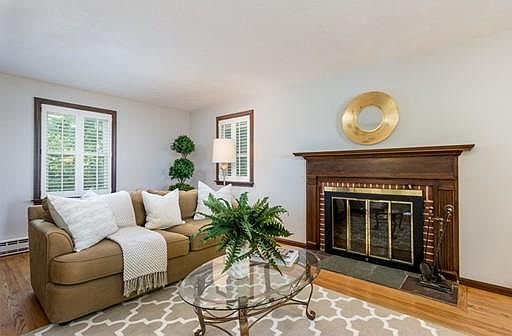 Start making memories in this lovely Gambriel Colonial set back on a corner lot and tucked away on a cul-de-sac in the Broadmeadow District. The first floor features a front-to-back living room with fireplace, dining room with chair rails, and kitchen with sliders opening to the large deck looking out to the beautiful yard and mature trees. A powder room is also located on the first floor. The second floor boasts Master Suite with bath, 3 additional bedrooms, and a family bath. The lower level is walk-out with a slider to the back yard in the large family room with fireplace. Another spacious finished room with new composite floor is currently used as a laundry room. This home has been freshly painted throughout, with new/refinished hardwood floors, Newpro replacement windows (including sliders, 2012), garage and large driveway, electric pet fence, lots of storage space. Come home to Needham!