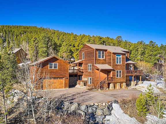 Welcome home to this 3+ bed / 4 bath, craftsman built home, centrally located in the picturesque mountain town of Nederland, Colorado. The main level open floor plan with hardwood flooring & a modern gas fireplace is complemented by a chef's kitchen with concrete countertops, dual sinks, & stainless appliances. The upper level encompasses the master suite & 2 additional bedrooms, each with majestic mountain views. A lower level bonus space, accessible via private entrance, includes 2 multi use rooms with a second gas fireplace - offering limitless possibilities. Multiple exterior decks & a firepit area formed from mountain boulders are ready to enhance your outdoor entertainment. The detached 2 car garage with a second story multi-use room has plenty of space for both vehicles & gear. An ideal location that is a short commute to Boulder, within walking distance to town, & within easy reach of unlimited outdoor recreation opportunities including hiking, biking, skiing at Eldora & more.