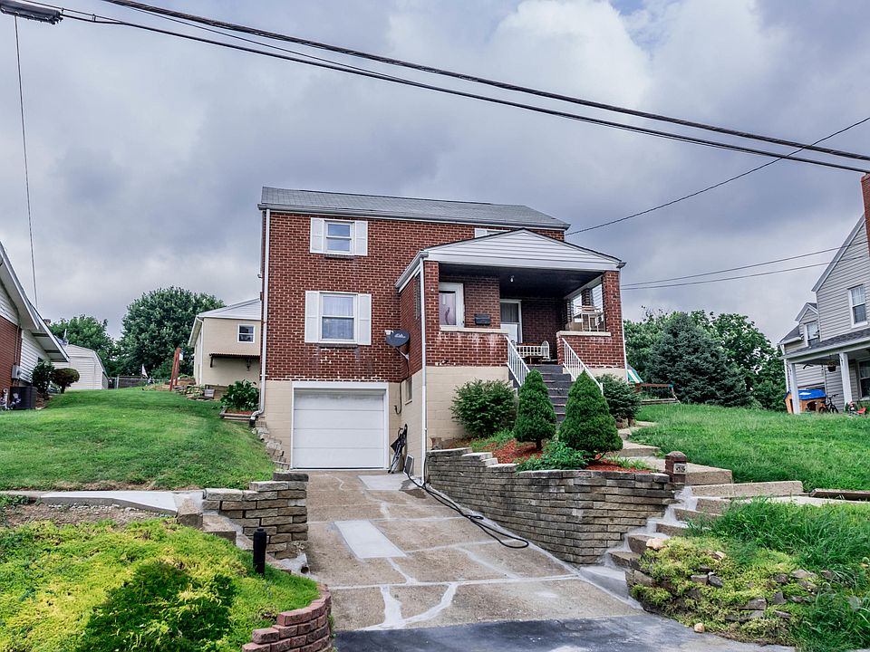Picture yourself starting the day with a hot cup of coffee sitting on your front porch looking out across Uniontown to the beautiful cross on the Jumonville Mountain and then glancing to the right viewing the windmills in the mountains above Haydentown. Beautiful views can be seen from many locations in the home and around the property as the home sits highest in the area. Hardwood oak floors, 3 bedrooms, 1 newly remodeled bathroom, 1 mechanics basement bathroom, a very large laundry room and a detached 2 car garage with enough parking on the property to park 5 vehicles outside. A newly constructed RV pad sits alongside the garage that is long enough for a large bus. A full size basement is under the garage with a toilet, water and a gas line. Sprawling entertaining spaces flow outside