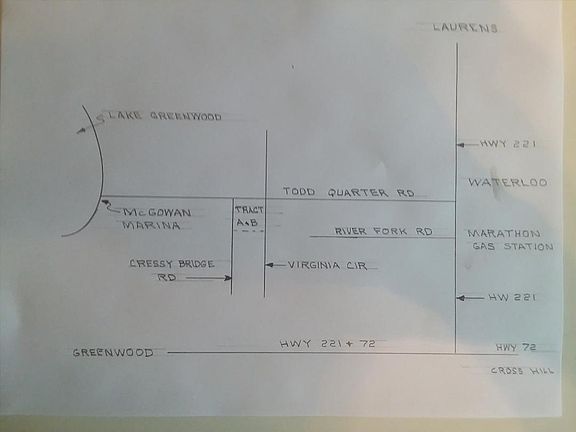 This 2.6 acres consisting of tracts A and B which is located minutes away from lake Greenwood and a boat ramp. If you are looking for a beautiful wooded property with plenty of room, this is for you. Lots of privacy here and even has approx. 272 feet of road frontage on Cressy Bridge Rd and approx. 279 feet road frontage on Virginia Circle. Tract A and B is almost 500 feet deep from road to road.` Water, internet and electric available. Here is an opportunity to own your land with Owner financing. Call 864-554-0263. Make this 2.6 acres yours.