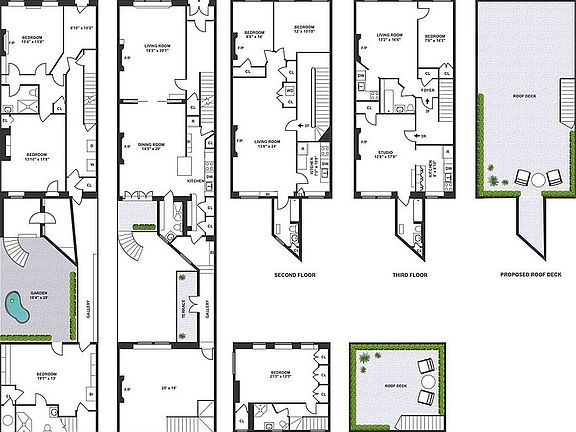 Historic Greek Revival Townhouse with 3-Story Private Guest House in the heart of the Gold Coast. “The row of Greek Revival dwellings on the south side of West 11th Street between Fifth and Sixth Avenues is one of the finest early 19th Century Streetscapes in the area "Charles Lockwood", Bricks and Brownstones” – Rizzolli Books. Rarely does a property of this distinction and unique footprint come to market. Here is the opportunity to create a home of extraordinary proportions incorporating two distinct buildings situated on the most sought-after street in Greenwich Village----a classic townhouse with a separate three-story guest house. Both buildings are 22 feet wide on a 94-foot lot. The townhouse is an elegant, well-preserved classic row house on the most desirable block in Greenwich Village, often referred to as the “Gold Coast”. The main historic house is 22’ X 42’ plus an extension, which provides bathrooms on all four floors. As a Greek revival townhouse, the proportions are graceful and elegant, retaining architectural details of the 19th century such as high ceilings, fireplaces, parquet floors, original moldings, and pocket doors. Now divided into four apartments, it can easily be converted back to its grand original configuration as a distinguished single-family home. The property will be delivered vacant. The main house is connected to the guest house by a two-story gallery creating a “picturesque secret garden” with the ambiance of an inner courtyard in Provence, an urban oasis in the heart of the city. Both the parlor floor and the gallery have French doors opening out to two separate, sunny balconies for garden viewing. The professionally landscaped garden features mature plantings and a koi pond. The guest house, although connected on two floors to the main house, is its own entity. With three floors overlooking the garden, it feels like a country cottage with a fireplace in the main room and two bedrooms, each with its own bath. There is garden access from several levels of the house. The easily accessible roof offers the possibility of an excellent roof garden with views of the entire property. Two distinct but connected Historic Townhouses await the vision of a new owner to create New York’s most celebrated residence.