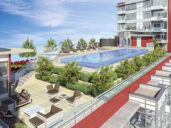 Live @ THE ONE! Your False Creek Retreat! Pedestrian, pet & people-friendly. Steps to water & minutes from the city, enjoy peace & harmony in Southeast False Creek. Award-winning Pinnacle International crafted these homes with light-filled spaces & stunning views. Hotel-style amenities make every day feel like a holiday at home. This air-conditioned 1 bed + oversized den/storage for work at home, has 9' ceilings, hardwood floors, open layout & a gourmet Bosch kitchen with a gas cooktop & quartz counters. Relax on your balcony looking out over 1st Avenue to the Olympic Village. Pop out of the building into Vancouver’s most modern and happening community, or stay home and enjoy a rooftop infinity pool, hot tub, gym & more. Steps from the Seawall, parks, shops, SkyTrain & top dining and more