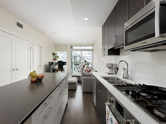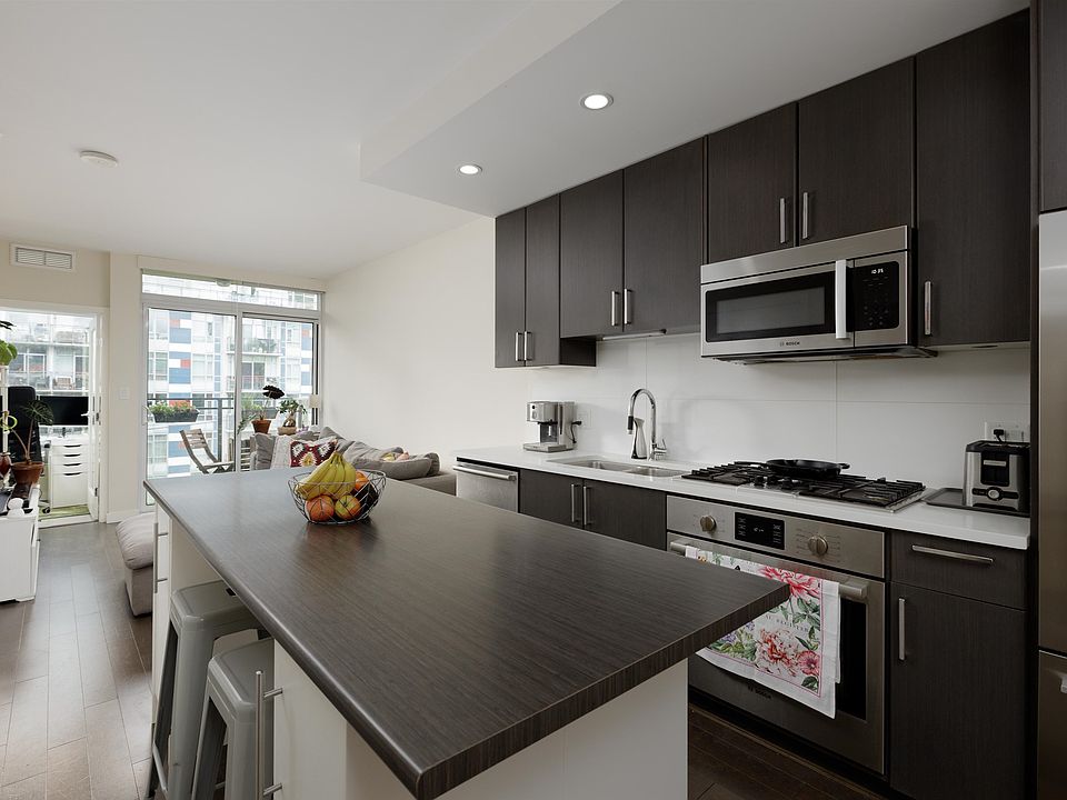 Welcome home to The One! This spacious one bedroom, bathroom plus den AND solarium modern condo with south facing quiet courtyard view. This gorgeous unit has an open concept floor plan. Highlights include A/C, a large walk-through closet, modern kitchen w/Bosch/Fisher Paykel appliances, a gas stove & quartz countertops. Building amenities include a rooftop terrace with pool and jacuzzi, party room, gym, and kids playground. Included Secure underground parking, storage, and bike storage! Located in the heart of Vancouver's Southeast False Creek neighbourhood, walking distance to Urban Fare and restaurants, minutes to Granville, Kitsilano, downtown & Seawall. Pets & rentals are allowed. Open House with appointment September 17th, 18th Saturday, Sunday 2-4pm