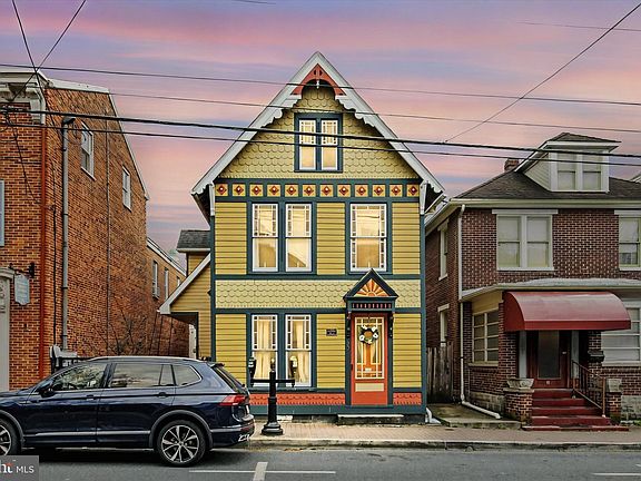 Very rare lovingly authentically remodeled 1800's home (with 2011 addition) in historic downtown Gettysburg, just one block off the square! Zoning is Old Town, with Historic Overlay, allowing for commercial uses or residential uses. Just a few steps from the courthouse makes it a great option for an attorney's office. Just a block from Historic Gettysburg Square, and the fact that there are 2 front rooms that could be partitioned off from the rest of the house makes it an option for some small commercial space, while still living in the house. Exterior is exceptionally charming with beautifully painted golden yellow/green/red painted wood and vinyl siding , fenced yard with brick patios on side and rear, flowerbeds, and all front-facing windows are old wavy glass, along with some stained glass panels. Adding even more charm is the summer kitchen in rear yard with metal roof and brick floor. Inside you will find all solid hardwood floors. Kitchen features brick-front wood-burning fireplace, custom island with seating, quartz countertops, all new in 2023 stainless steel Kitchenaid appliances, pantry cabinet and closet that could be a pantry, and dining area. 1st floor laundry. First floor also has a full bath with walk-in shower and a large bedroom. 2nd floor has 3 more bedrooms, one of which is the primary with an en-suite full bath. 2nd floor also has full hall bath , hallway walk-in closet and an office. Walk-up attic, accessed in hallway, could be made into additional living space. 2 HVAC systems. Whole house sprinkler system. 2 car garage has loft, plus 2 off-alley parking spots. It's truly rare to find such a well-done remodel in downtown Gettysburg! See associated documents for details on the remodeling and addition, as well as historic info..