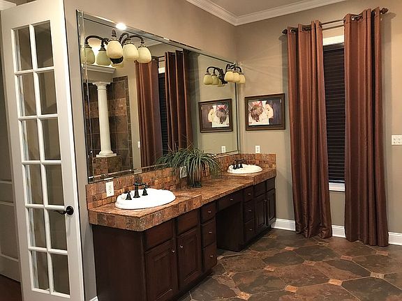 Custom built home on 2.71 acres with 3000 square feet downstairs and 979 square feet upstairs. 10 feet ceilings downstairs everywhere. Roman shower master bath with French doors and 9 feet long double step vanity. Custom Gourmet kitchen with built in Sub Zero Refrigerator and Freezer, 8 eyes Viking Gas range with hood, double oven, warming oven, trash compactor, stand alone ice maker, three different heights bar 9 feet 6 inches long. 22 feet by 28 feet stained concrete covered patio with privacy brick wall and double kitchen outside sink. 15 feet by 15 feet uncovered patio. Internal storm shelter/safe room inside master bedroom. Oversize insulated double garage with epoxy finished floor. Front porch bricked with gas lanterns. Circle drive with entry brick columns with lights. 10 oval top entries/ passages inside home.