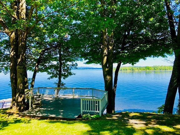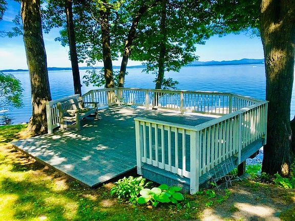 Rustic Elegance along the shores of Lk Champlain. This home features two main "wings", one for the owner and immediate family and the other for additional guests. The center of the home is designed to serve as the gathering space. The kitchen is highlighted by custom cherry cabinets w/ granite counters open to the formal dining area on one side and then opening to the living room on the other side. This central heart of the home offers cathedral ceilings w/ exposed wooden beams accenting the classic rustic design. Updated windows grace the length of the home facing the lake providing for panoramic views from every room. With a deck that also spans the length of the home plus an additional deck perched on the edge of the bluff overlooking the beach, there is plenty of elbow room for entertaining large gatherings of guests. Aluminum docking and shore station being left for new owner.