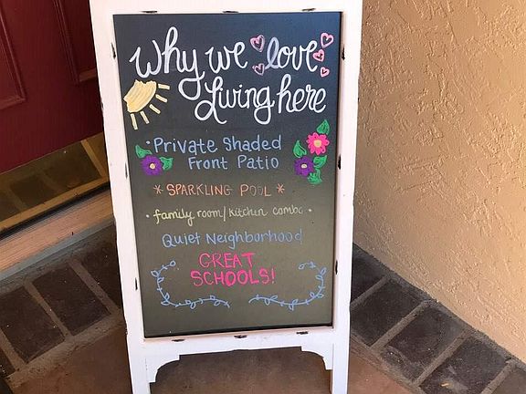 Spacious open floor plan with kitchen, dining and family combo room. Adjacent living room and formal dining. 1/2 bath off inside laundry. Etched glass door from kitchen to laundry. Wood laminate floors throughout. Both master and guest baths have new flooring, toilets, shower enclosure, tub & tile. Front enclosed patio provides extra space to relax in the heat of the day with fountain. Back yard has a new fence and a sparkling solar heated pool. Granite kitchen with new stove top and kitchen sink. Dual paned windows, whole house fan and celling fans throughout. Quiet neighborhood and great schools. Refrigerator, washer and dryer not included. Section 1 pest clearance provided. Seller has done all inspections for roof, pest, home and pool.