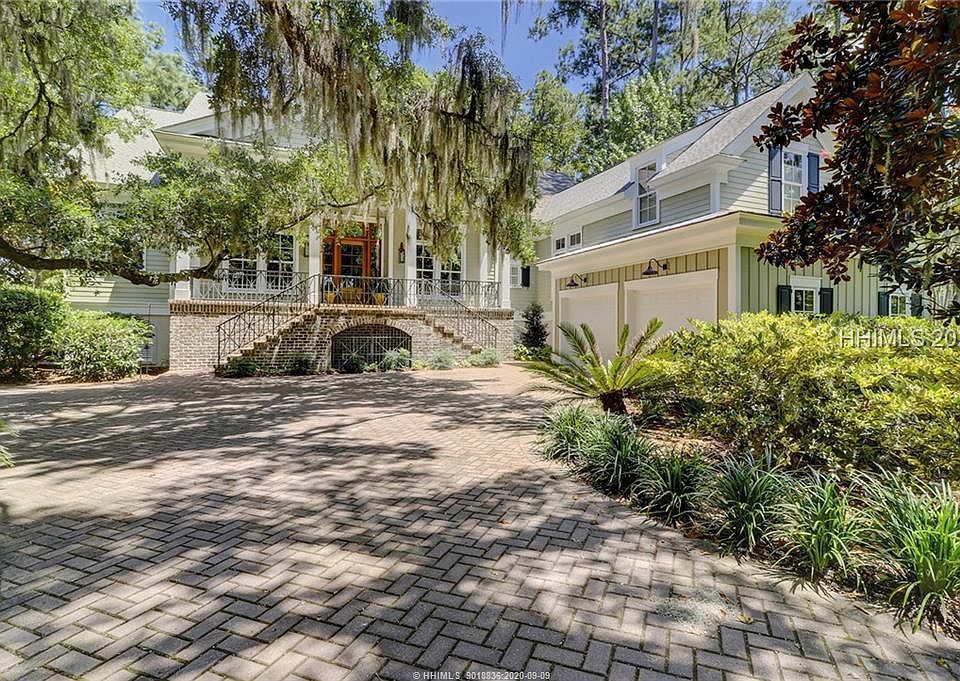 Spectacular Lowcountry home situated on one of the best marsh view lots in Colleton River overlooking the #4 island green of the Nicklaus course. Elevated construction w/double staircase and perfect blend of color & texture; all set behind a magnificent 285-year-old Live Oak. This traditional Lowcountry-style home has an open floor plan that flows beautifully around a compelling screened porch. Enjoy 2 gas log fireplaces, bedroom separation, and an impressive Chef's kitchen w/2 islands & 6-burner gas range w/grill. No detail overlooked! Grasscloth wallpaper, quality millwork, volume ceiling details, and expansive owner's retreat with wet bar.