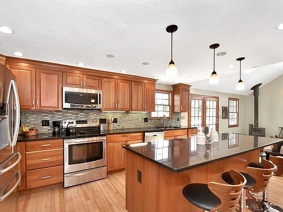 Wow this expanded cape nestled in one of North Framingham's favorite neighborhoods has it all! Entertain a-plenty in your cathedral ceiling great room complete with wood stove, skylights, French doors leading to deck and large picture window streaming warm sunshine. Thoughtfully planned kitchen, also fully open to great room, is a chef's dream with over-sized island and seating for 4, pantry and plenty of storage! Cozy up in the charming living room w/ bay window, wainscoting and fireplace. 4 Generous sized bedrooms and 2 full baths means there is room for everyone. Finished basement offers expansive bonus room/play space as well as separate side office perfect for work or studying. 1 car garage, beautiful private back yard and central air are just more perks to this excellent candidate to call home!