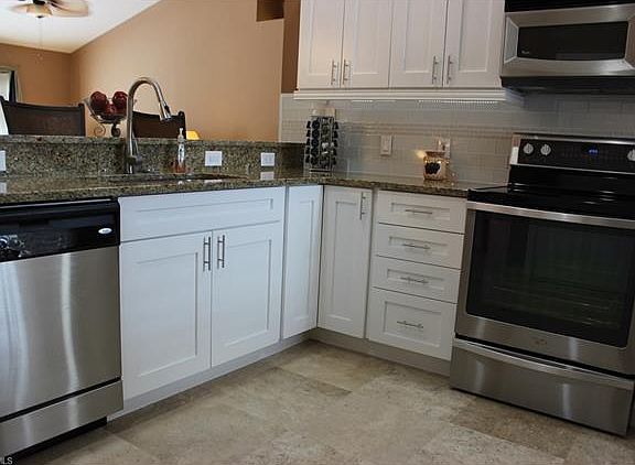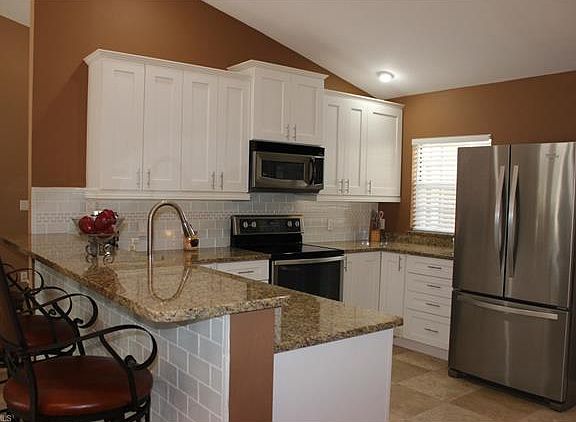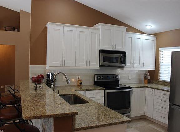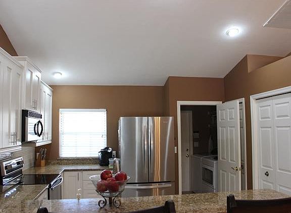 Lovely home with heated volley ball pool. Located in the Gates Mills section of Willoughby. New kitchen with gorgeous granite, soft close drawers, under counter lighting and beautiful new back splash, new and young appliances. Beautiful marble flooring in great room. Volume ceilings, French doors, central vacuum, wine cooler, lots of pantry storage. Speakers in all rooms and lanai with individual controls. Master suite with walk in shower and separate garden tub, jetted tub in guest bath. Screened front entry, w/ double door into home, custom storm screens, large utility sink in garage, brick paved insert on circle drive with lot's of parking. Brick paved lanai and front porch, great for entertaining. Home has blue board and hard coat plaster walls. Young roof with architectural shingles. Desired North Naples community with only $55 annual HOA. Close to hospital, restaurants, shopping and only minutes to the beaches, Gulf of Mexico.