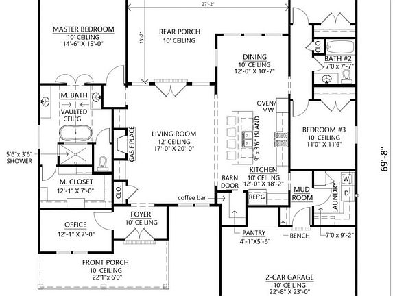 The heated square footage is 1941 but you also have 462sf of porches that let your living space flow outside. When you walk in you'll see straight through the house to the woods behind and there is a private office on your right. Come on in to your living room that connects to the kitchen and dining and has French doors to open to the private back porch. You also have a gas fireplace flanked by built-ins in the great room. The living room has 11' ceilings and the rest of the house has 10'. The kitchen is a dream with off-white and wooden shaker cabinets, a 9' island, gas range, large pantry and a fan-favorite backsplash. Your primary suite is on the back of the house and the bathroom has to coolest layout with a freestanding tub in front of your shower. That connects you to your huge owner closet. The left side of the house has two more bedrooms with a shared bath and a spacious laundry room. Aduramax LVP Napa, in the dry cork color run throughout the main spaces of the home with neat tile and brass accents. Low dues and homeowners insurance and super fast wifi are a bonus. High elevations mean no flooding or flood insurance and even more important, peace of mind. And yes, you'll see lots of wild turkeys on Wild Turkey Lane... the street was appropriately named!