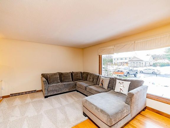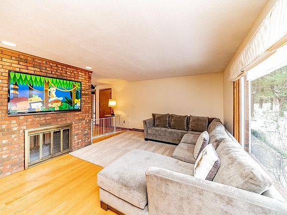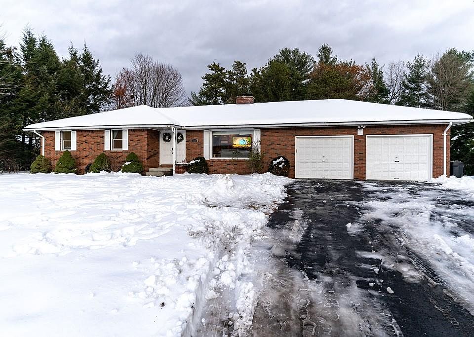 Located in a neighborhood setting you will find this brick exterior remodeled mid century style ranch style property. Brand new roof, brick exterior, 3 nicely sized bedrooms, a 4 season sun room. A remodeled kitchen featuring soft closed cabinets and quartz counter tops with a dual side functioning fireplace. Newer hardwood floors. Updated bath with dual sinks and marble stone top. large open dry basement ( APO) that could be finished with a half bath and laundry with two washer hookups. Central air, natural gas, town water and sewer, private back yard with a patio and fire pit on a half acre of land. 2 car heated/ cooled garage, large driveway for parking. Move in ready