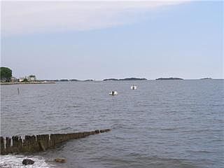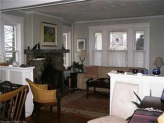Sunfilled, spacious home with great views of LIS and islands. One house from the beach. Living room with stone fireplace, original wood trim and moldings, two large porches and deck. Short walk to restaurants. Deeded beach rights and mooring access.