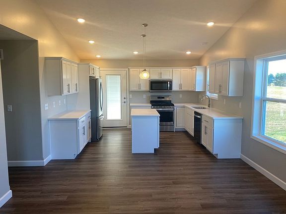 Fall in love with this open ranch floorplan in desirable Fox Creek Village. This home features spacious bedrooms, super chic & usable kitchen w/ Trendy Blue Island surrounded by white cabinets. Day light windows in basement, 2-car attached garage, convenient main floor laundry & 2 full baths. Killer views looking out over grassy basin, NO Backyard Neighbors! Fox Creek Village enjoys the perks of not having to mow, and having a community clubhouse, including a workout room, indoor pool & a party room that can be reserved for gatherings. 2x6 exterior construction, LED puck lights for superior energy efficiency and light quality, USB port plugs situated throughout, wifi programable thermostat, high efficient HVAC, MyQ garage door remote access from smart phones... All modern up to date efficient building quality! Fantastic price for new construction! Interior photos taken from previous build of similar plan. Outside photos are the actual home being built.