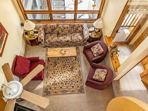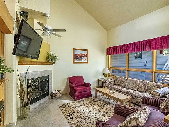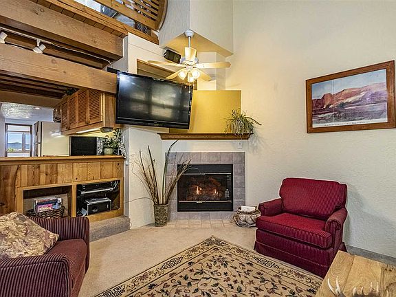 Spacious, bright, views. This large condo checks all the criteria at the popular Benchmark condos. Third floor unit takes advantage of the magical views of Wheeler Peak from both the second living/dining area and master suite. Enter this condo via a small, private deck that even fits a cute little table and chairs on and has lovely views into the pines. The entrance is double door with a mud room in the middle - perfect for not letting your warmth escape on a cold winters day and dropping your jackets. The step down living area has a feature gas fireplace and large windows to let in the morning sun. It's open to the kitchen and plenty of room for entertaining. Rarely you see a condo with a pantry and this one has plenty of storage! On this level you'll find the full main bathroom, situated behind the kitchen. Keep walking through to a secondary living area and dining room (or use your imagination here to create other useable spaces). Then onto the master suite with the best views and attached bathroom. Up the spiral staircase, you'll find a room kitted out with four twin beds, rental ready, then through to the third bedroom which is a loft. Continue to use this as a bedroom, or it would make a fabulous home office complete with natural light via skylights and a half bathroom. This is completely move-in or rental ready. All furnishings stay with the condo. There is one side of a double garage that comes with this unit also.