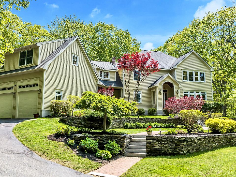 Welcome to 38 Woldbrook Drive, located in one of Windham's most sought after neighborhoods on Sebago Lake! A meandering drive passes manicured lawns, stone walls and lush landscaping and ends atop a hill where this beautiful 4,907+/-SF custom colonial has been thoughtfully placed. You approach the home through terraced stone walls w/ granite steps and gardens, and enter the meticulous home in the 2-story foyer. An open floor plan is highlighted w/ an exposed wood center stairway, and polished wood columns throughout define the cozy living areas. A dining area accommodates seating for 12 and is framed with 12 custom wood transom windows and wood floors. Custom cherry cabinets and Corian counters outline the chef's kitchen w/ center island that is complimented with Thermadore and JennAir appliances, large pantry, tiled floors, and a half bath off it. A home office is off the foyer w/ built-in cherry cabinets and bookcase. A master suite on the upper level has a wood burning fireplace, walk-in closet, an oversized master bath w/ glass walk-in tiled shower, and a Jacuzzi tub. There are 2 additional bedrooms, a full bath, laundry room with utility sink, an exercise/study room, and walk-in access to 600+/-SF of current attic space with full dormer, power, and development potential.