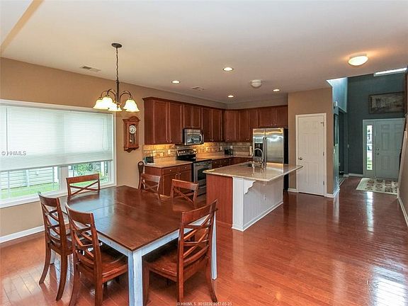 4 bedroom, 2.5 bath, 2600+ sq. ft. home with a beautiful outdoor living area overlooking protected nature preserve. Newly updated kitchen featuring hardwood floors, extended island, 42" cabinets, granite countertops, outdoor kitchen with firepit, and extended Belgard paver patio. Tons of storage throughout the house, including 2 attic spaces (one is a walk-in), walk-in closets in each bedroom, and large storage closet under the stairs. Great family-friendly neighborhood with access to trails and pool. Zoned for the desirable Pritchardville Elementary School and May River High School.