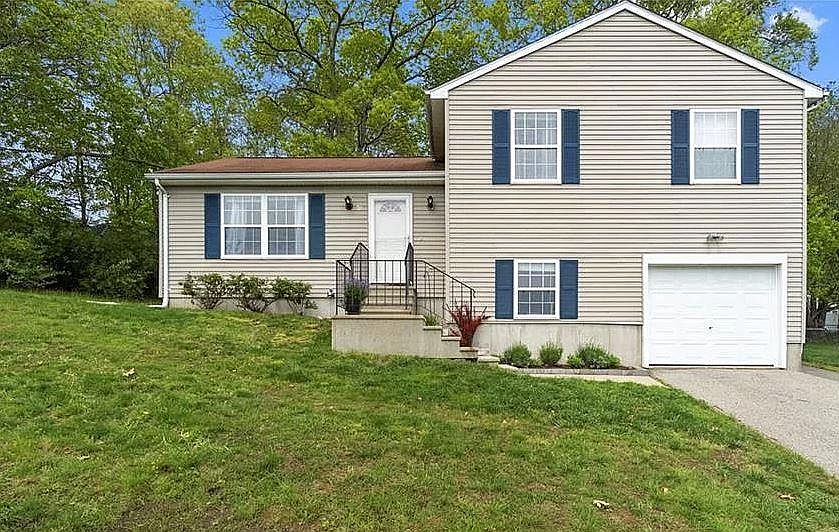 Pending status SHOWING JULY 30, 2022 @ 10AM Special military discounts You will love this well-maintained 3 bedroom 2 full bathroom home in the conveniently located Fieldcrest development. As you enter the home you will appreciate the light & airy open floor plan living area. The living room has a vaulted ceiling and gleaming hardwood floors and is open to the dining room which also features those great floors. The kitchen is open to the dining room and has lots of counter space and stainless steel appliances. Upstairs you find 3 bedrooms and 2 full baths with the primary suite having its own full. The lower level features a large room perfect for a family room or home office. There is a laundry area/mechanical room and the basement offers lots of storage and don't forget the garage. CAIR. The large deck is off the kitchen and opens up to the side yard and play area. Close to shopping, commuting, beaches, and the village of Mystic. Brand new roof! Tenant pays for utilities and services, such as electric, heating oil and cable. Smoking is not allowed inside the house. You bring your own washer and dryer