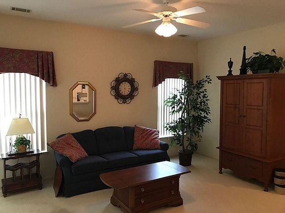 AVAILABLE May 1st! For short or long term rental with utilities INCLUDED! Lovely 2 bedroom, 2 bath villa in one of the best Sun City locations. This home is offered fully furnished and includes dining area, eat in kitchen, den, large master bedroom, two car garage and more. Short walk to Town Center and convenient to main gates. Sorry, no pets. Trash service and cable/internet are not included with rental. Sun City is a gated community for adults 55+ years old.