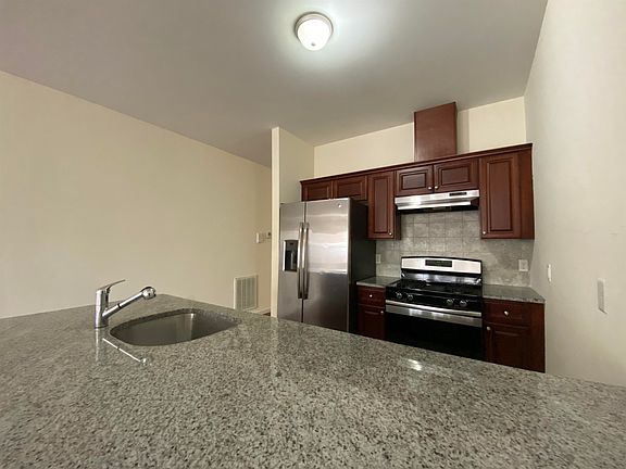 Quality living at an affordable price. Built in 2017, this rare-to-find open concept apartment has in-unit Washer and Dryer, beautiful cherry wood floors, large living room with bay windows. The kitchen has an over-sized peninsula with gray granite countertop. Stainless steel appliances including dishwasher, double door refrigerator and vented hood. Big pantry. Each bedroom has ample closet space and gets plenty of sunlight. Central Air and Heat, 2 additional storage spaces available inside unit. Large bathroom and sizable closet in hallway. Google maps show 11 min by foot to 22nd St Light Rail Station or 8th street lightrail. Also, the Bus 120 across the street goes to NY - Lower Manhattan or the 81X to Exchange Pl to Jersey City. Parking extra fee. Photos from previous tenants.