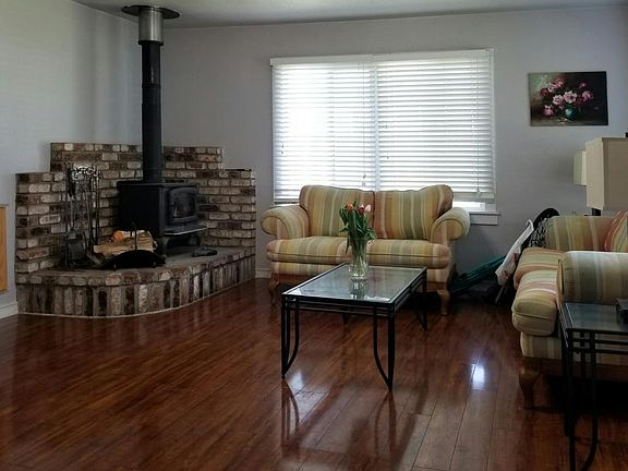 Solid starter home or investment property at a great low price. Updated interior with pretty laminate floors. Living room features a cozy wood stove. Spacious kitchen with dining area is open and bright with adjacent laundry/mudroom. Sunny patio and large fully fenced backyard. Alley access allows for additional parking in back. Bonus room/workshop area. Upgraded plumbing, windows and heating. Plenty of potential here. Add your special touches!