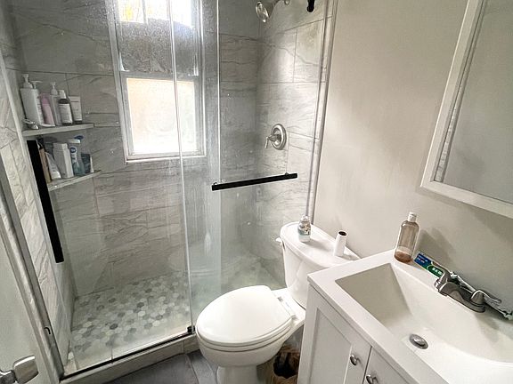 Newly 2025 Renovated 1BR/1BA Apartment with new flooring, modern kitchen featuring stylish cabinets and countertops, updated bathroom with walk-in shower, and new AC.