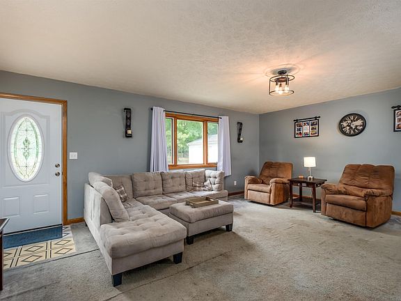 MUST SEE! Country Living but close to Crane Naval Base and less than 30 minutes drive to Bloomington, Bedford, and Bloomfield! This enticing single family ranch is located on 10 partially wooded acres that include recreational trails. It is a four bedroom, two bath house with full finished walkout basement and detached three car garage. The property includes an above ground pool and large playground/sandbox. It also boast a 16x24 shelter house situated next to a potential pond area. Hidden just in the woods is clubhouse. The basement includes a large utility/laundry room and a playroom with character murals.