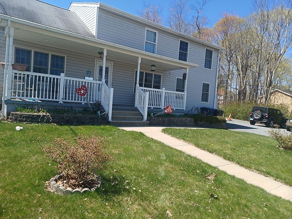 Very Nice Home That has been updated and well cared for. Main level has large eat in kitchen with lots of cabinets, formal dining area, nice large living room, there is a bedroom on first floor with full bath and closet but could be a den, office has nice laundry area and lots of storage, and a main full bath. Second floor offer a large master bedroom with full bath and walk in closet, two more bedrooms and a nice family room area with French doors to a deck. Home has nice covered back patio area and a covered front porch to enjoy. Lower level is good size with utility sink and a half bath would make a nice workshop area. Has detach 1 car garage. Walk to Bus Line for easy commute.