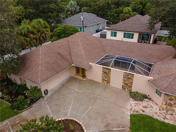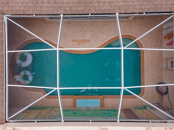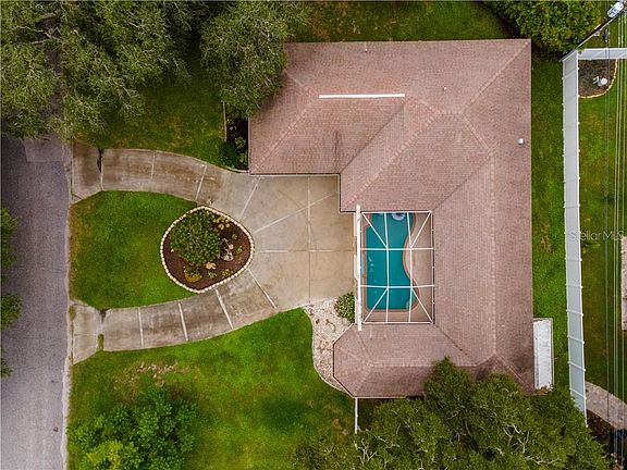 Have you ever heard of a Courtyard pool home? If not come check one out! This is a one of a kind. Seller designed and built this home and it is quality. Walk in the front doors and you are back outside the lovely pool area. Confused? Check out the 3D tour or make an appointment for a private showing. Large living room with vaulted ceilings overlook the pool. Such a great kitchen that features a double oven including an Advantium high speed cook and microwave oven, cooktop, Corian Counters, lazy Susan, appliance garage, and plenty of cabinets. Large master suite with its own private lanai, his and hers closets, jetted tub and a walk in shower. Two other bedrooms on the opposite side of the home with inside utility room. Two car side entry garage. All nicely landscaped with a circular drive. Easy to see!