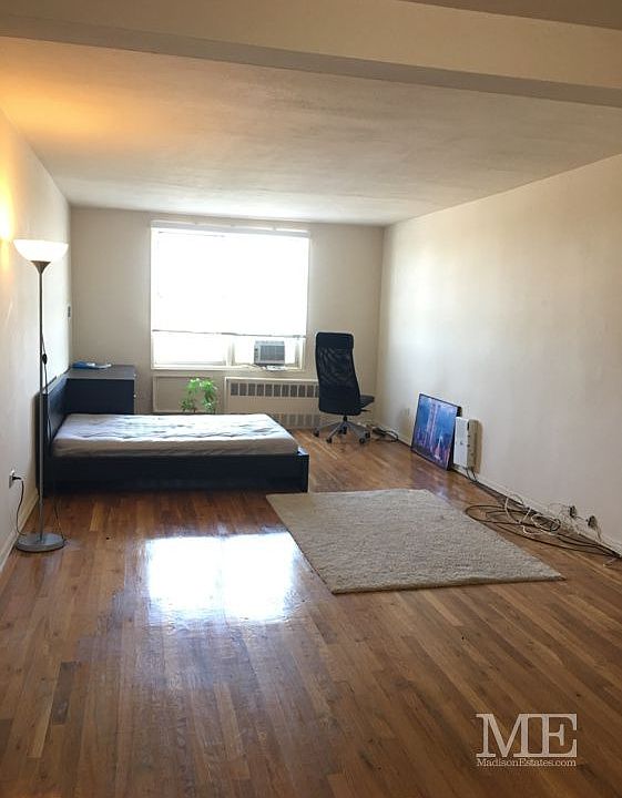 Heat, hot water and gas included. Only one month security, one month rent, one month broker fee due at signing. Laundry room Elevator Live in super. Bright and sunny Large 1 bedroom apartment. Tons of closet space. Breakfast bar. Hardwood floors. High ceilings. Windows in every room. Walking distance from trains, shops, cafes, restaurants parks and more. Apartment will be cleaned painted and look brand new. Cats okay, no dogs. Must have about 700 credit score and make about 35 times the monthly rent annually. To schedule a viewing contact Alicia at Madison Estates.