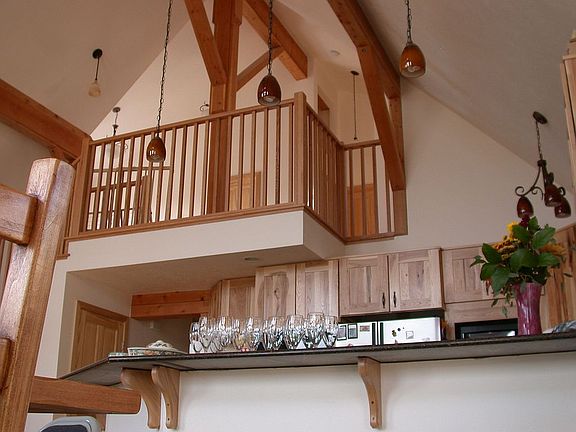 Custom post and beam. 22' peak, open floor plan. Large landing upstairs with room for office and craft area.