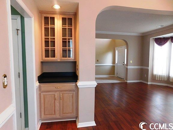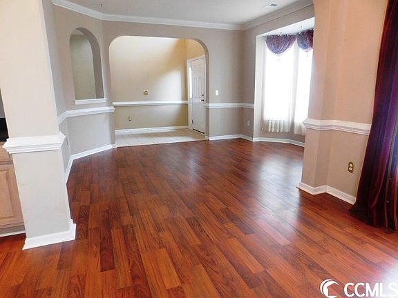 Awesome 4BR/2.5 BA/ huge Carolina Room 2 story gorgeous home with 2 car garage nestled on large, landscaped lot in desirable Spring Lake Community in Carolina Forest. Walk into a huge, tiled foyer open to your left is a large formal living room with lovely dental moldings, chair railings, bay window and wood laminate flooring. A large archway leads to a formal dining room complete with the same lovely dental molding and chair railing. Dining room has door leading into the kitchen with small butcher’s cabinet. Kitchen is huge and opens directly into the family room sporting soaring cathedral ceilings and plenty of windows to provide a bright, light atmosphere. Kitchen has tiled floors , granite countertops, stainless steel appliances to include smooth top range, microwave, dishwasher, French door refrigerator/freezer, large pantry, granite eat-in breakfast bar and desk area with tons of custom cabinets. Right off the kitchen /living area find French doors leading to a huge, delightful Carolina Room with lovely wood tiled floors and sliders leading to a large patio area and lovely landscaped, fenced back yard for your outside entertainment and privacy. Master bedroom is on Main level of home and boasts multi-level tray ceilings, dental moldings, and chair railing. Master bath is tiled and features double sink/vanity areas, large soaking tub, walk-in shower, and phenomenal walk-in-closets. The laundry room is on main level and has door leading from garage area for convenience. Half bath is conveniently located for guests on main level. Venture upstairs and find an office at top of stairs with a walk-in large attic storage area. On second level find 3 additional large bedrooms. All the bedrooms have very adequate space and closets with 2 of the bedrooms featuring additional walk-in attic storage areas. A full bath is perfectly located for access from bedroom. Home has a huge Carolina Room overlooking the lovely backyard and provides a phenomenal 3rd gathering place (Carolina room, living room and family room.) Home has it all with upgrades galore and needs a few cosmetic touches and is priced accordingly. Spring Lake has an awesome Club House Facility and remarkable pool area and is only minutes away from the Ocean and all Myrtle Beach has to offer. See it, you’ll want to call it yours.