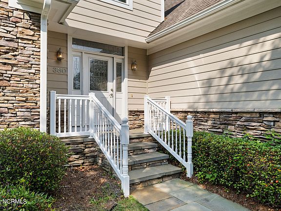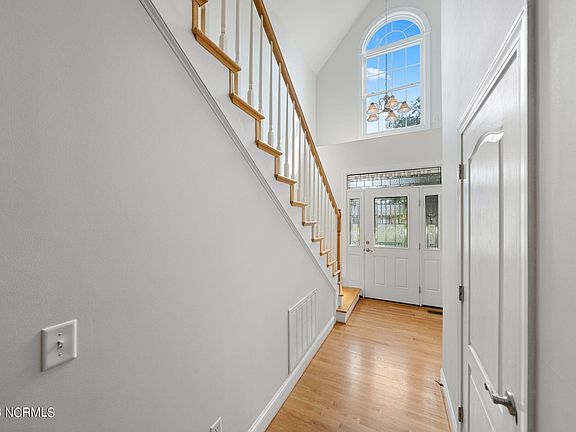 Welcome to 380 Blossom Tree Lane, a stunning two-story residence located in the amenity-rich community of Winding River Plantation. Boasting over 1,800 well-planned square feet, this home offers an abundance of space for comfortable living. With three bedrooms and two and a half bathrooms, it provides ample room for a growing family or hosting guests. Nestled in a quiet, tree-lined area, the property offers a serene and peaceful ambiance. The curb appeal of this home is truly captivating, with its easy maintenance and beautifully landscaped yard, complemented by stacked stone accents, cement composite siding, and a welcoming front porch. Prepare to be captivated by the dramatic two-story foyer of this charming home, featuring an arched window that bathes the space in natural light. As you enter through the front door, adorned with a leaded glass insert, transom window, and sidelights, you'll be greeted by ¾-inch oak hardwood flooring that guides you into the living room, where the vaulted ceilings create a sense of grandeur. A gas fireplace adds warmth and ambiance, while the lovely wood flooring throughout the room enhances its elegance. This space is perfect for entertaining guests or simply relaxing with family, providing a cozy yet luxurious atmosphere. The charming breakfast nook of this home seamlessly connects to the open living room, creating a cohesive and inviting space. From there, it leads to the spacious kitchen featuring handsome cabinetry, solid surface countertops, and stainless-steel appliances for a modern touch. With a pantry for additional storage, this kitchen is as functional as it is beautiful. On the opposite side of the kitchen is the formal dining room adorned with crown molding and a ceiling medallion suspending a lovely chandelier. The dining room also provides a convenient pathway back to the foyer, ensuring easy access for formal occasions or welcoming guests. For those special gatherings, the attractive three-season room offers an