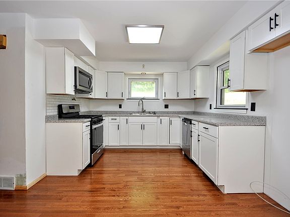 This charming home is located in Elizabeth Twp. has updated kitchen with brand new dishwasher, stove, and microwave. 2 full bathrooms completely updated, with newly finished hardwood floors throughout entire house. There's plenty of storage space throughout the main house and extra basement space for all your projects: In addition to sitting on 1 acre of land. Newer furnace and hot water heater.