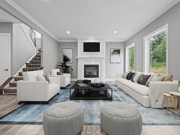 Walls of glass greet you as you look from the foyer to the great room in this move in ready home. As you enter, you'll be impressed with the open floor plan - perfect for entertaining.  Window walls continue thru the eating area showcasing  the rear yard of the home.  Beautiful wood cabinetry is featured in the chef's delight kitchen which also features an oversized island with seating, undercounter wine fridge and microwave. A Verona range is a perfect match for the home chef. Off the kitchen, the large eating area is enhanced by a vaulted ceiling and sliding glass door to a covered patio. Upstairs, you'll find the master suite with vaulted ceiling, barndoor and a full closet system in the walk in closet.  Also on this level is a huge laundry and 4 additional bedrooms - one being an ensuite.  Game room on lower level was just completed.  This is a true buy-move in ready, 3 car garage, only 2yrs old.