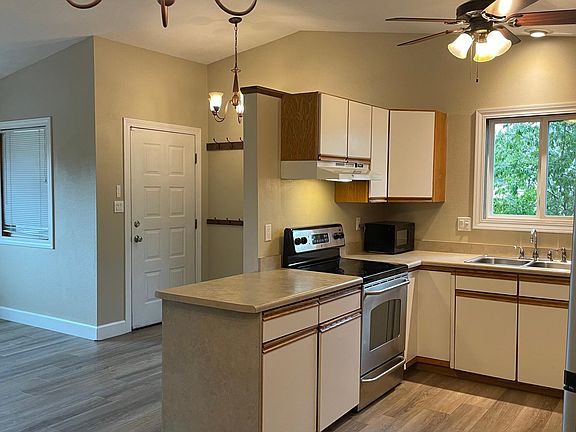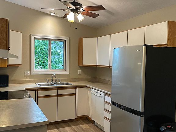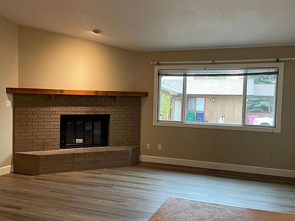 This 2 bedroom duplex sits on a quiet street with windows facing west and mature trees and bushes. Low to no maintenance backyard with concrete slab and 6' fence surrounding. Laminate hardwood flooring everywhere except living room and bedrooms which have carpet. Large closet space in both bedrooms and some crawl space storage below. Gas burning fireplace; bathtub in one bathroom shower in other; one car garage with a long, wide driveway; walking distance to grocery store & restaurants; cozy and clean. Owner pays for water. Renter responsible for gas and electric. Deposit and first month's rent due at signing. No pets & No smoking