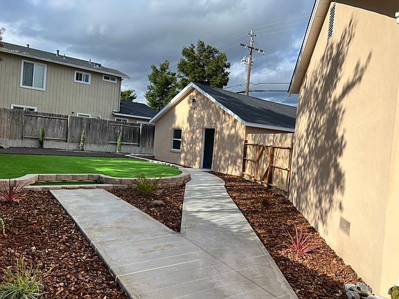This is a Newly completely remodeled home located in a corner lot right across from the school. The remodeled included, BRAND NEW floors, walls, AC unit, concrete driveway and pathways, windows, doors, cabinets, bathroom and kitchen with all new appliances and more. It has 3 Bedrooms 1 Bathroom, an oversized garage with a separate area for a shop or additional storage. Easy to maintain water friendly landscaping and a beautiful backyard perfect for children and entertainment Renter is responsible for all utilities, renters insurance must be maintained at all times. Last month's rent must be paid at signing. Flexible lease terms. Up to 2 pets maximum. No smoking allowed.