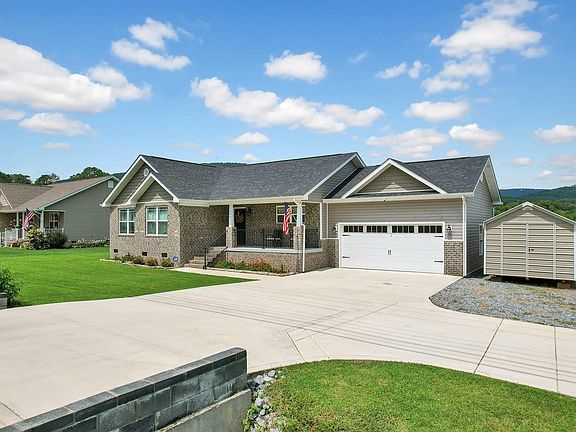 Discover the charm of this stunning, like-new home offering breathtaking mountain views. This 3-bedroom, 2-bathroom residence boasts 1,507 square feet of living space and features a spacious two-car garage. Built in 2017, the home exudes modern elegance, complete with a welcoming rocking chair front porch that offers picturesque mountain vistas. Enjoy the ease of single-level living with an open-concept layout, including cathedral ceilings that enhance the sense of space and light. The master bedroom, accessible via the back deck, offers a private retreat with direct mountain views. Step out onto the deck and bask in the serenity of the surroundings. Situated on a generous .29-acre lot, the property also showcases a brand-new outbuilding that provides ample storage and potential for various uses. This home's perfect fusion of contemporary design and natural beauty creates an idyllic living experience. Don't miss the opportunity to make this picturesque haven your own. Home warranty included with 2-10.
